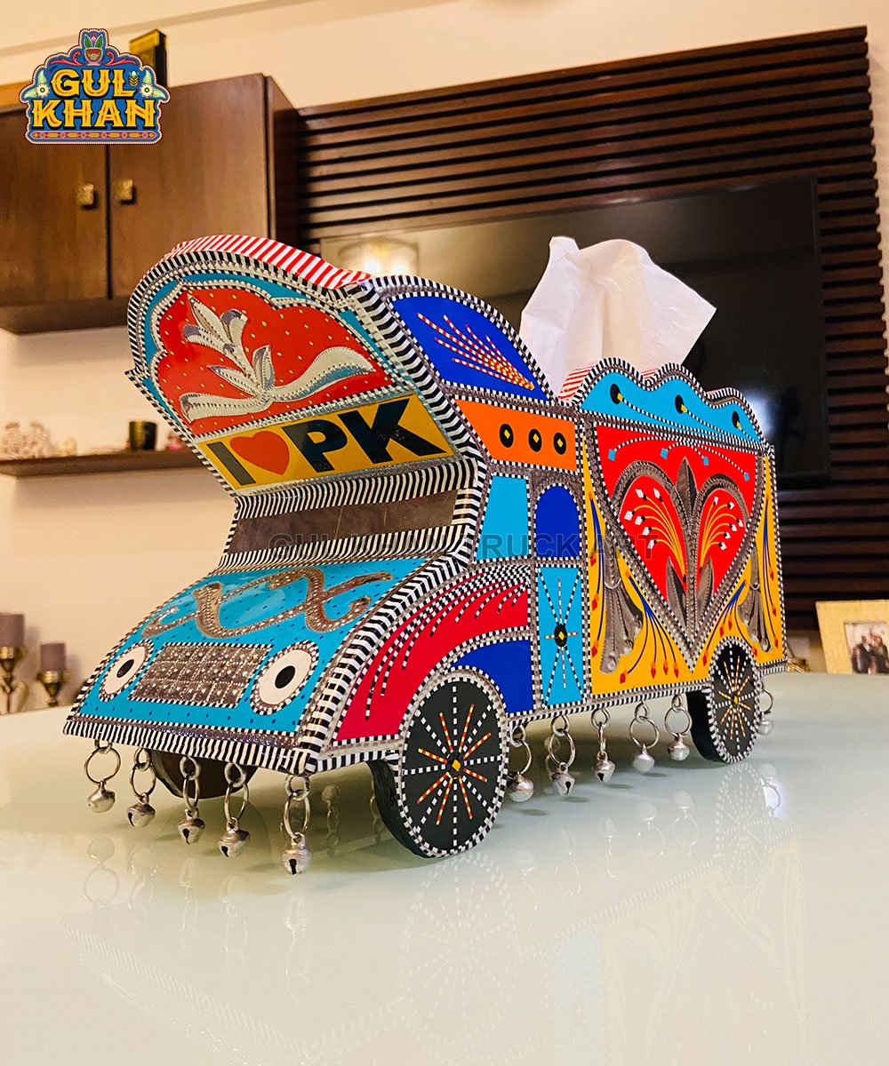The Tissue Boxes by Gul Khan are functional desk and tabletop accessories elevated through handmade chamakpatti craftsmanship. Built from wood and finished with vibrant detailing, they transform a basic everyday item into a visually engaging and brandable product.