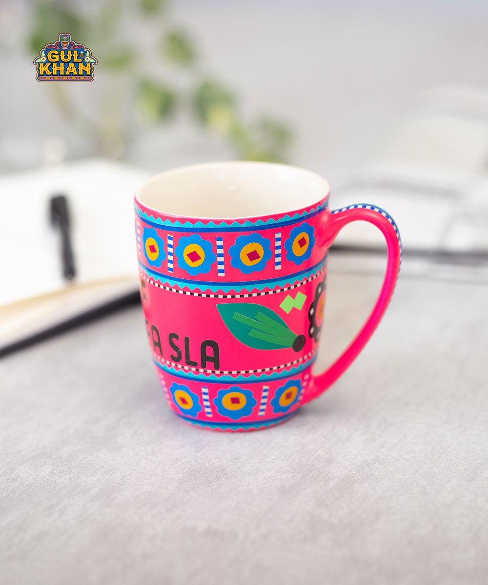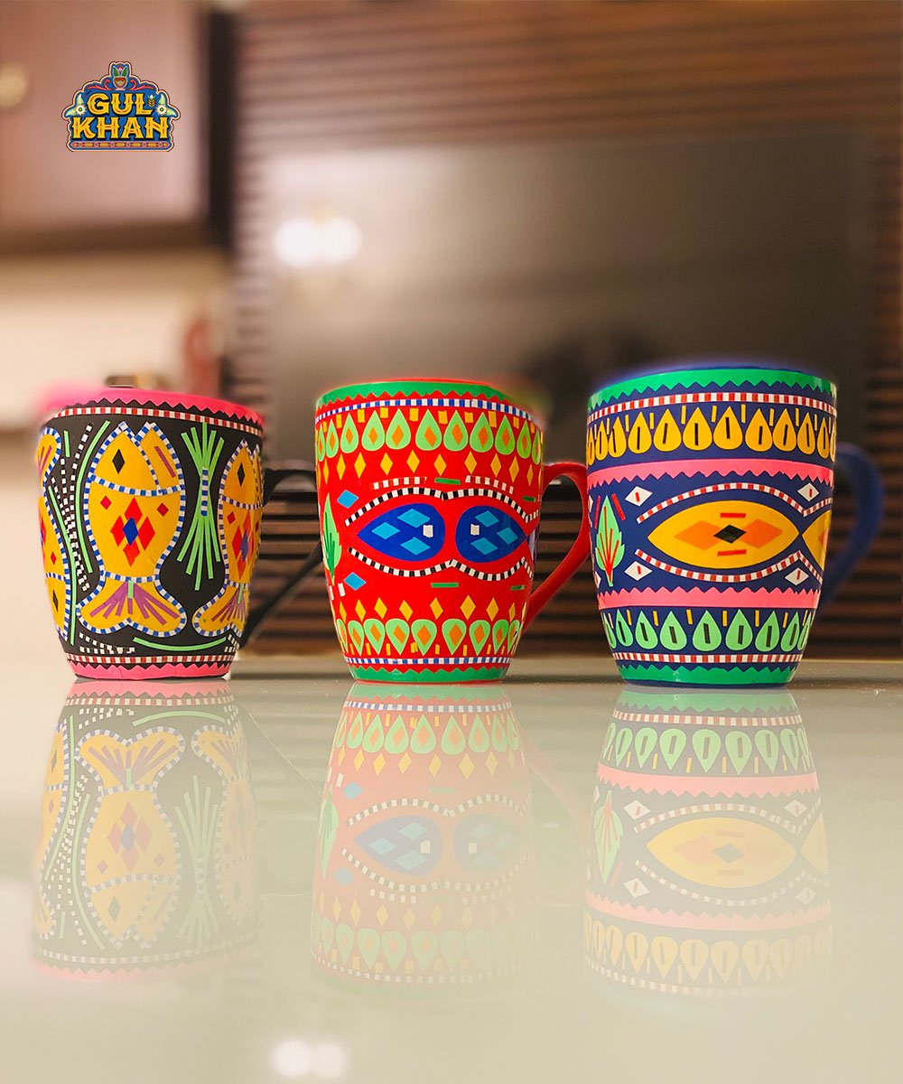The Chamakpatti Mugs by Gul Khan combine the practicality of a daily-use mug with the visual richness of handmade chamakpatti work. Built on a ceramic base and finished with vibrant handcrafted detailing, these mugs offer more character and stronger gifting appeal than standard printed drinkware.